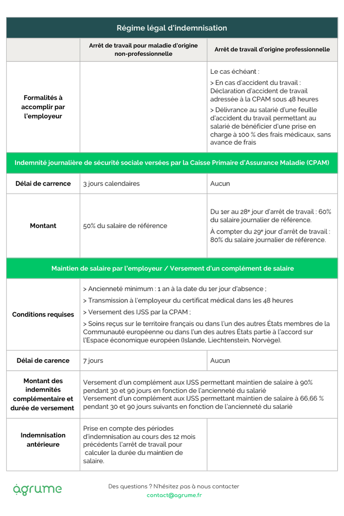 Pendant cette phase d’instruction, la Caisse Primaire d’Assurance Maladie indemnise le salarié, selon le régime de sécurité sociale applicable aux arrêts de travail pour maladie non-professionnelle (voir tableau ci-dessus).