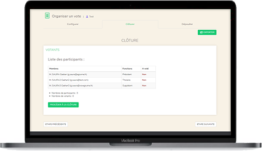 Cette opération met fin au vote. Vous pouvez y procéder dès lors que tous les participants ont voté ou, le cas échéant, que le refus de voter de l'un d'eux ait été acté.