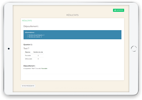 Les résultats sont disponibles immédiatement et peuvent être communiqués aux membres du CSE en séance. Vous disposez d'un rapport de vote contenant toutes les clés numériques que vous pourrez annexer au procès-verbal de la séance.