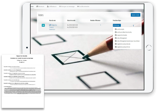 Nous mettons à votre disposition une plateforme certifiée par un expert indépendant. Nous nous chargeons d’envoyer les identifiants aux salariés et organisons la cérémonie de scellement. Une cellule technique est disponible par téléphone pendant toute la durée du scrutin.